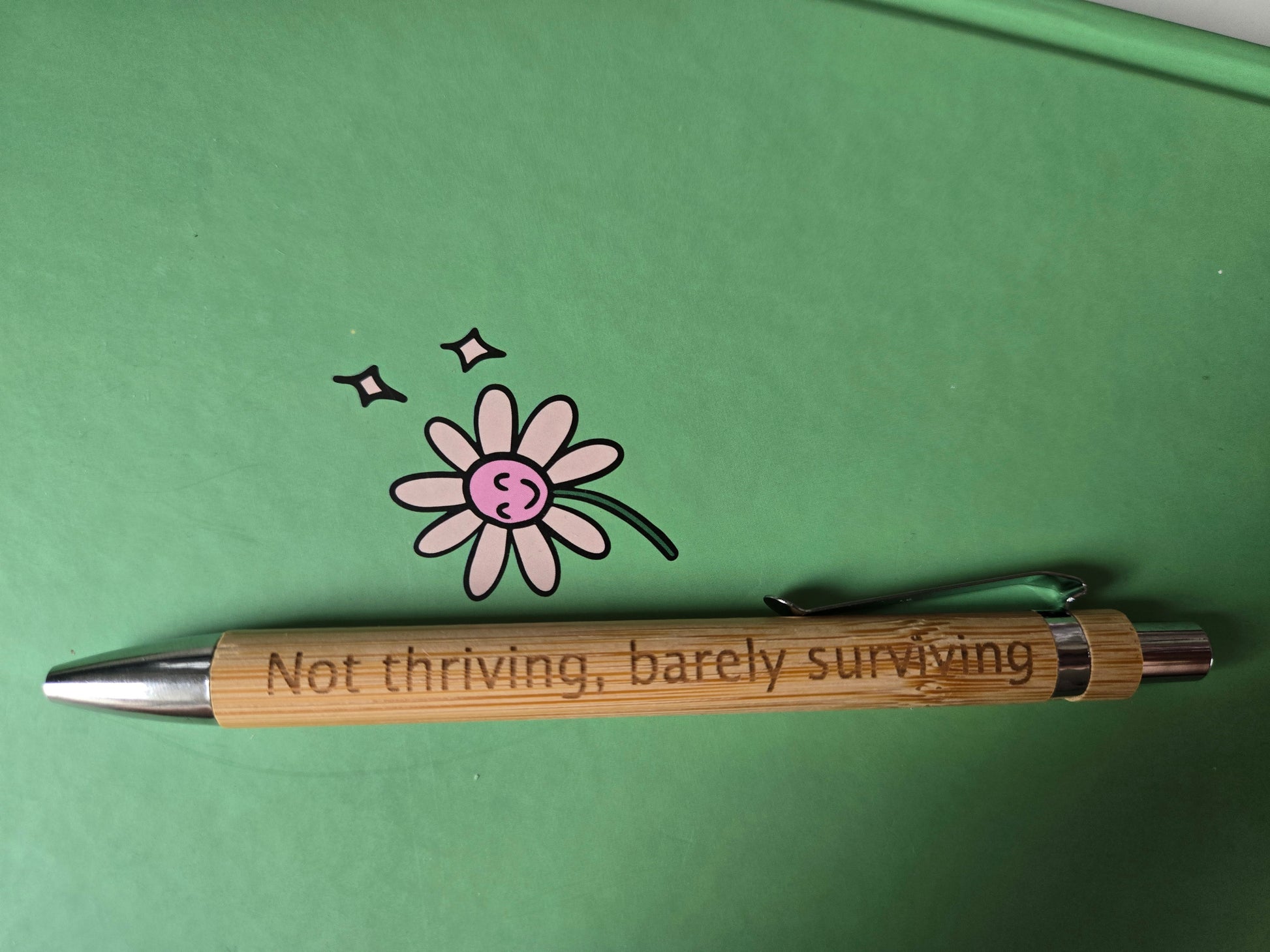 The writing on this pen is a little larger and a different font to our usual style.
